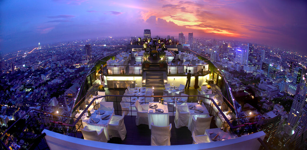 Banyan Tree Bangkok es quizás más conocido por su legendario restaurante y bar en la azotea, Vertigo y Moon Bar, ubicado en el piso 61. Los huéspedes pueden disfrutar de una cocina de clase mundial y cócteles bajo el cielo abierto, con impresionantes vistas de 360 grados de la ciudad abajo. El hotel también cuenta con varios otros reconocidos restaurantes, incluyendo Saffron, que ofrece cocina tailandesa refinada, y Taihei, un elegante restaurante japonés.