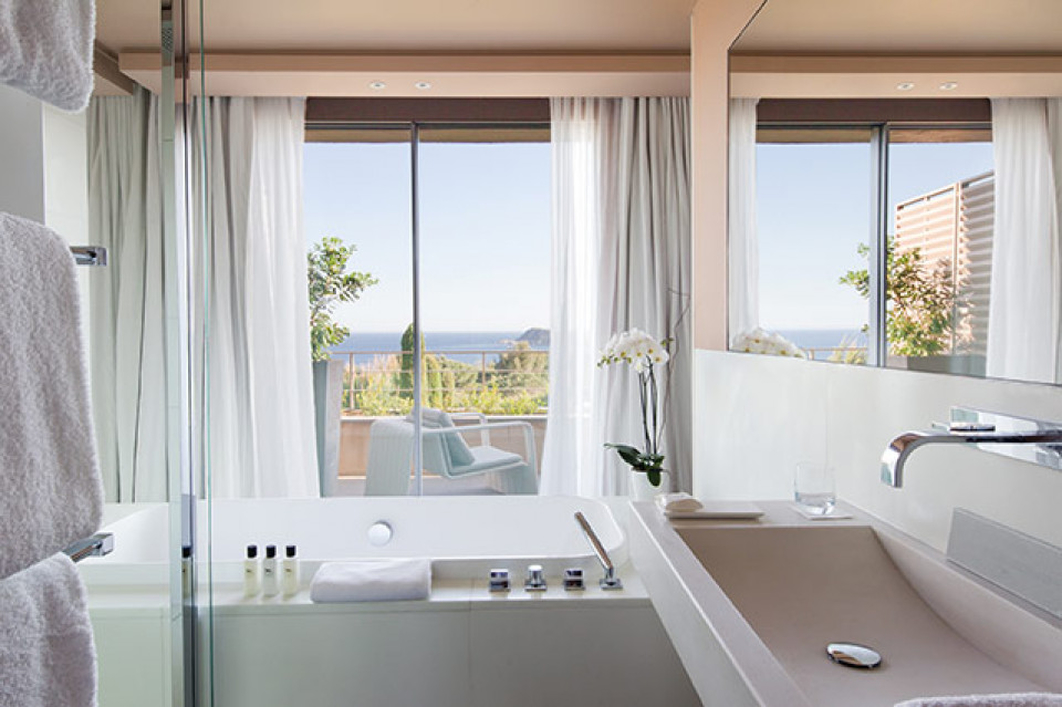 La propriété propose des chambres, suites et villas privées élégamment décorées, mêlant esthétisme intemporel, tons naturels apaisants et mobilier raffiné aux détails exquis. De nombreux logements disposent de terrasses ou de jardins donnant sur la Méditerranée scintillante, invitant à la détente dans un cadre spectaculaire.
