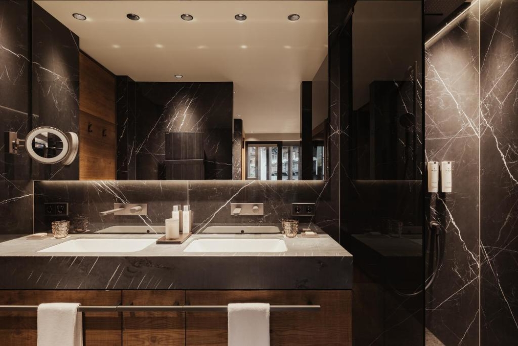 The hotel features 64 beautifully appointed rooms and suites, each designed to reflect alpine elegance while providing contemporary comforts. Warm wooden interiors, plush furnishings, and large windows framing panoramic views of the Dolomites create a cozy and inviting atmosphere. The suites offer additional space, private balconies, and exquisite design details for an elevated experience.