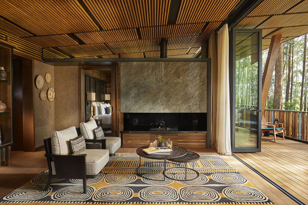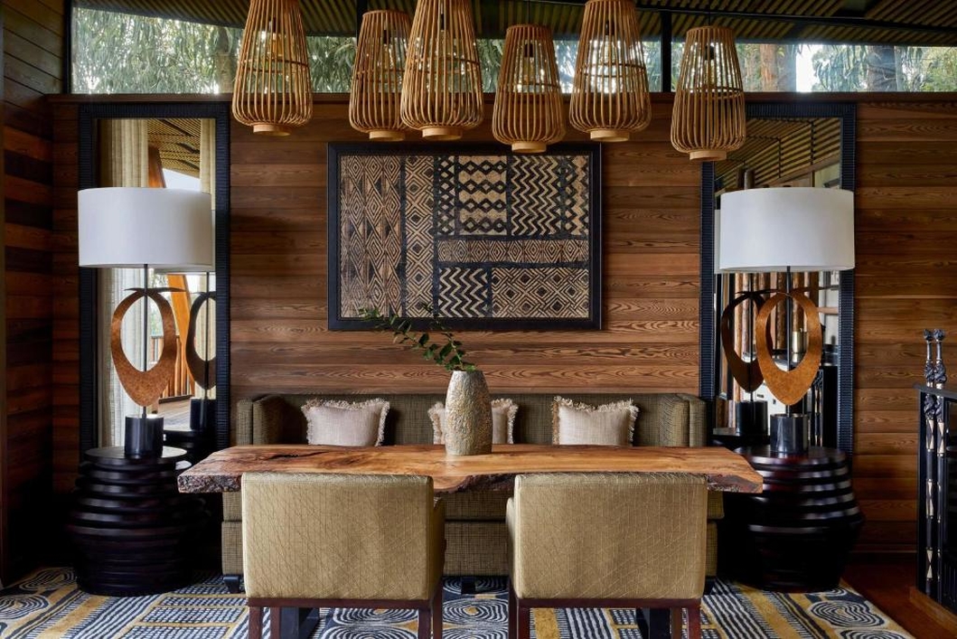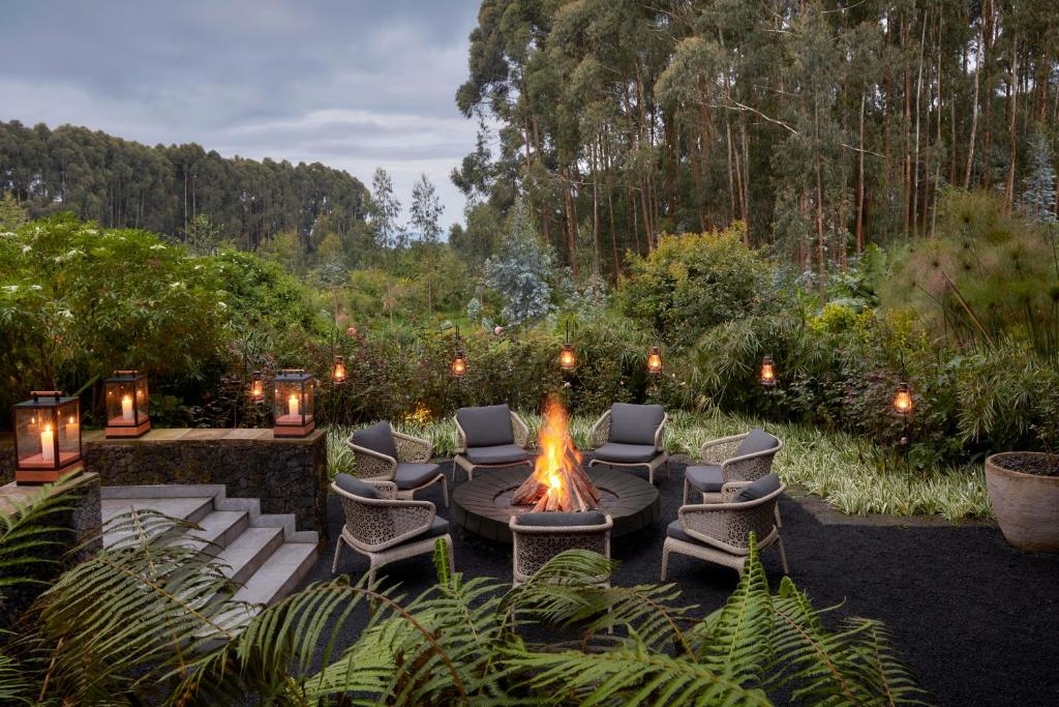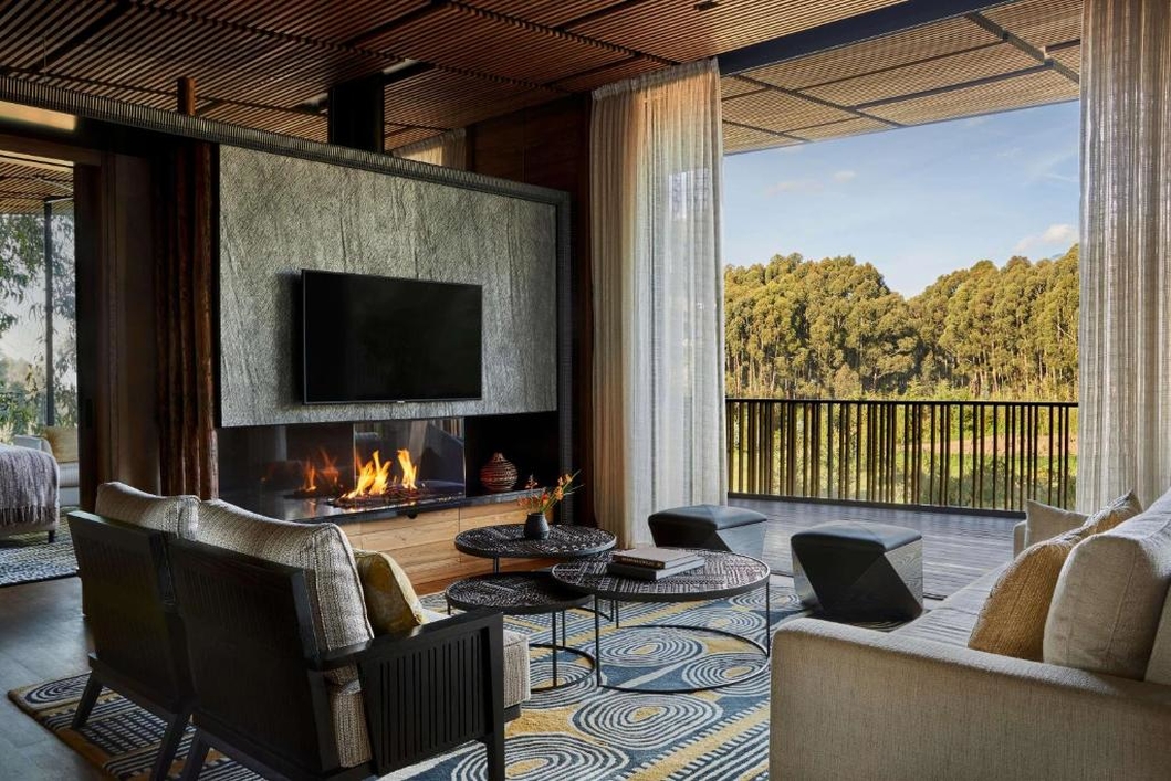 The resort features 21 suites and villas, each designed with thoughtful elegance and a deep respect for local culture. Interiors blend contemporary sophistication with traditional Rwandan craftsmanship, incorporating natural materials and panoramic windows that frame breathtaking views of the Virunga Volcanoes and dense rainforest. Private decks and outdoor lounges invite guests to relax while remaining immersed in the natural surroundings.