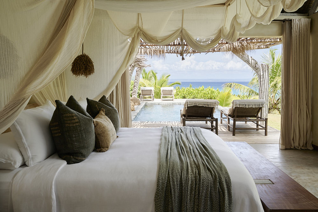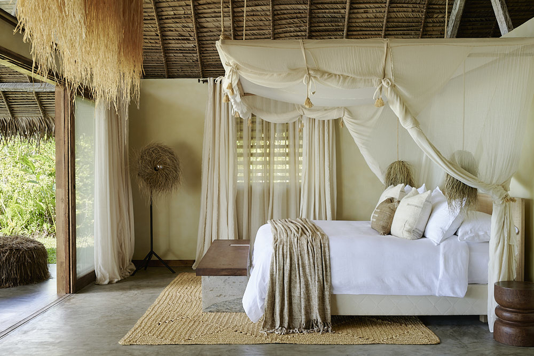 The resort’s design reflects a thoughtful fusion of African soul and wabi-sabi aesthetics, where natural materials and local craftsmanship create a relaxed but refined atmosphere. Guests can stay in a selection of tropical-style bungalows and a luxurious three-bedroom villa, all positioned along 1.5 kilometers of pristine white sand beach.