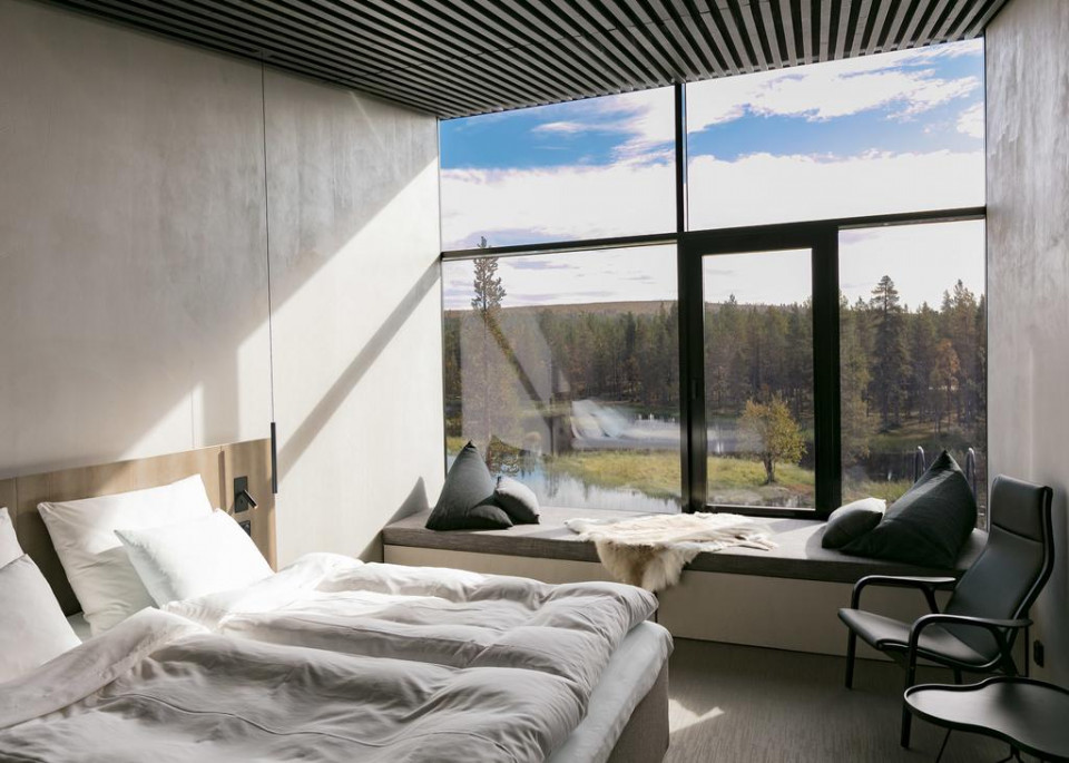 Javri is less than 30 minutes from Ivalo Airport in the heart of Finnish Lapland and on the edge of the second largest natural park in Finland. With capacity for just 26 adults all rooms have been meticulously and beautifully designed to bring in a feeling of Nordic peace and tranquility. The cuisine is exceptionally creative with ingredients delivered by the local community. Dinner is a 5 to 7 course extravaganza in tune with the seasons.